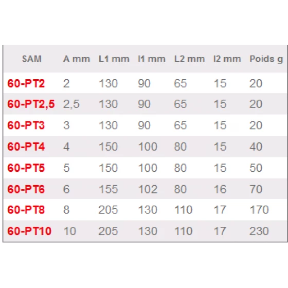CLE MALE POIGNEE SAM OUTILLAGE EN L 6 PANS 10 MM – 60-PT10