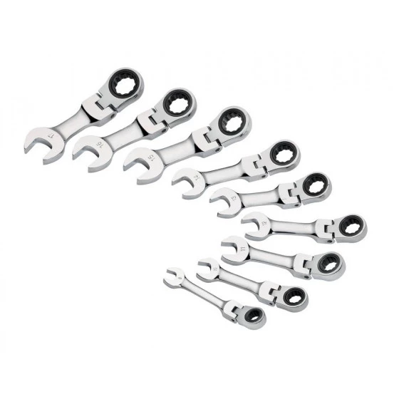 Jeu de 9 clés mixtes à cliquet articulées courtes